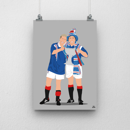 Ally McCoist & Paul Gascoigne Print – Rangers Trophy Celebration Artwork