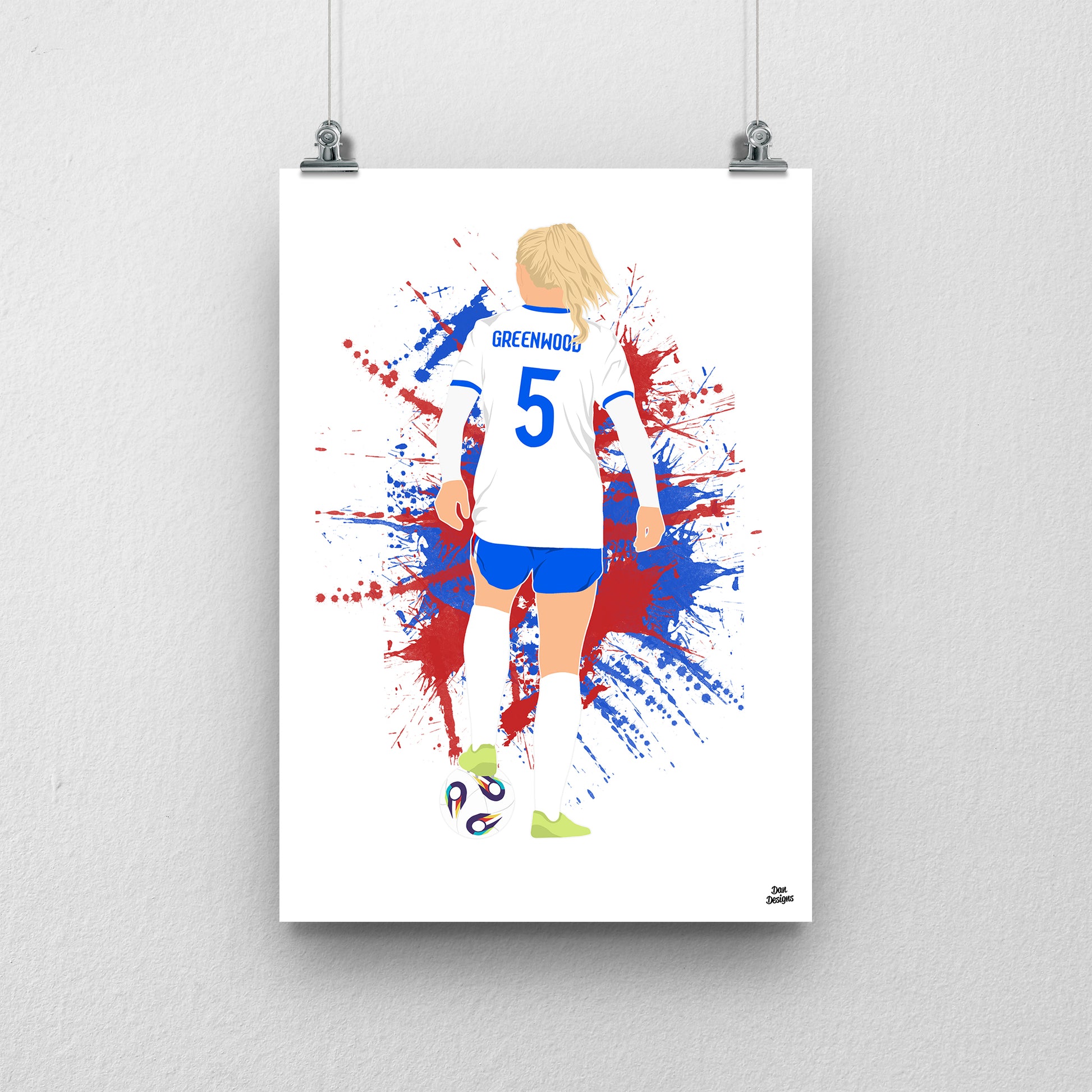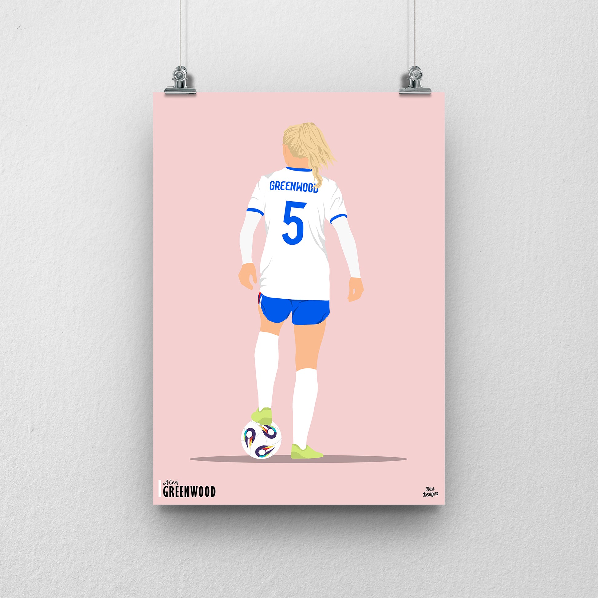 Show your support for Alex Greenwood with this minimalist football art print, created to mark her place in the Lionesses Euro 2025 squad. Known for her calm defending, left-footed delivery, and leadership at the back, Greenwood continues to be a key figure for England.