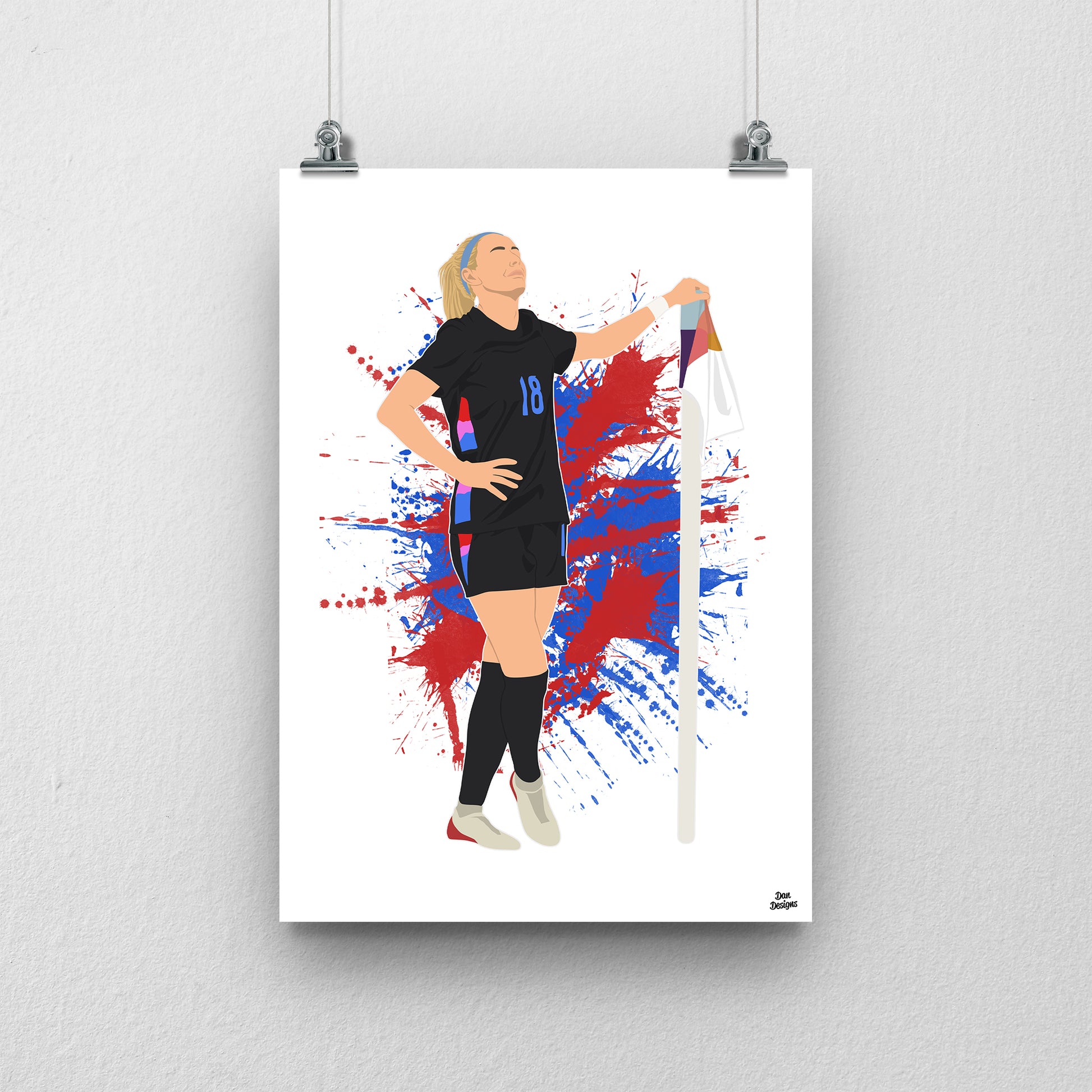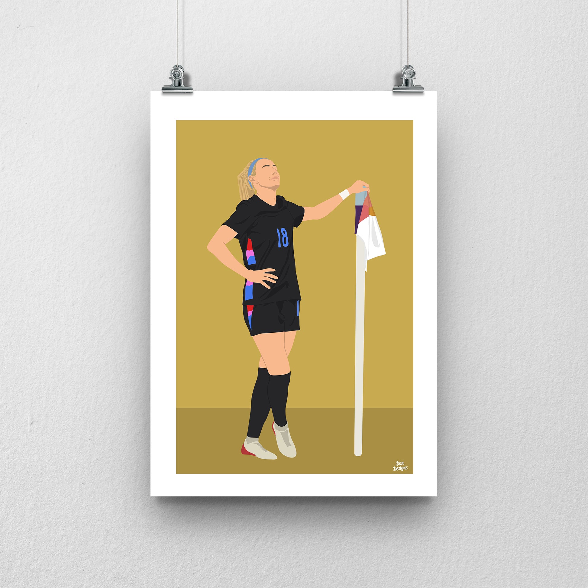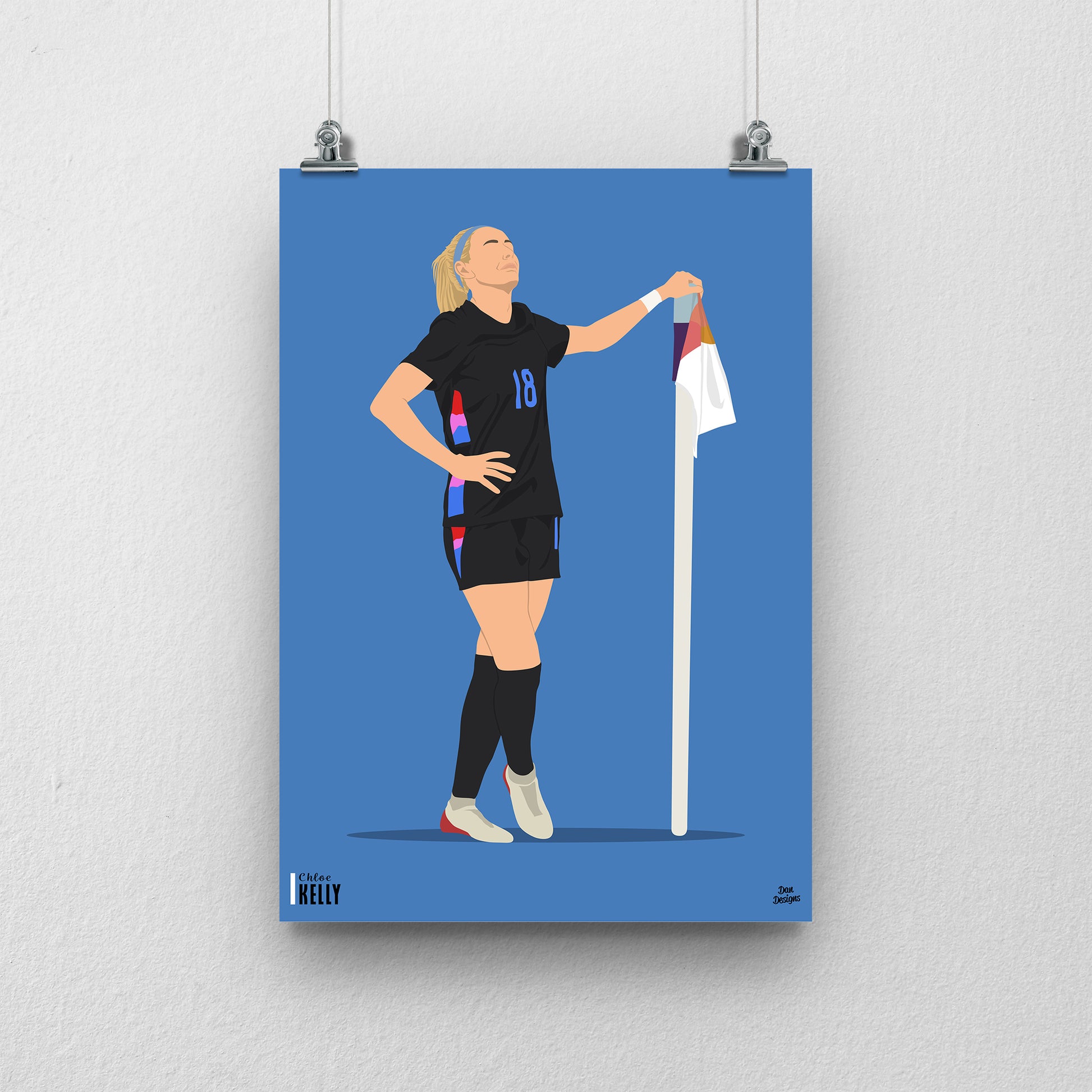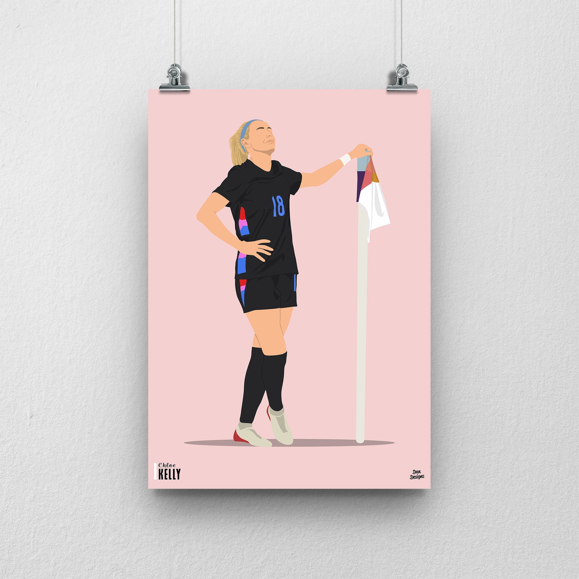 One of England’s stars with this Chloe Kelly Lionesses Euro 2025 print. Designed for fans of women’s football and collectors of minimalist football art, this one captures that iconic moment from the semi final when Chloe scored in the last second and pulled out this celebration.