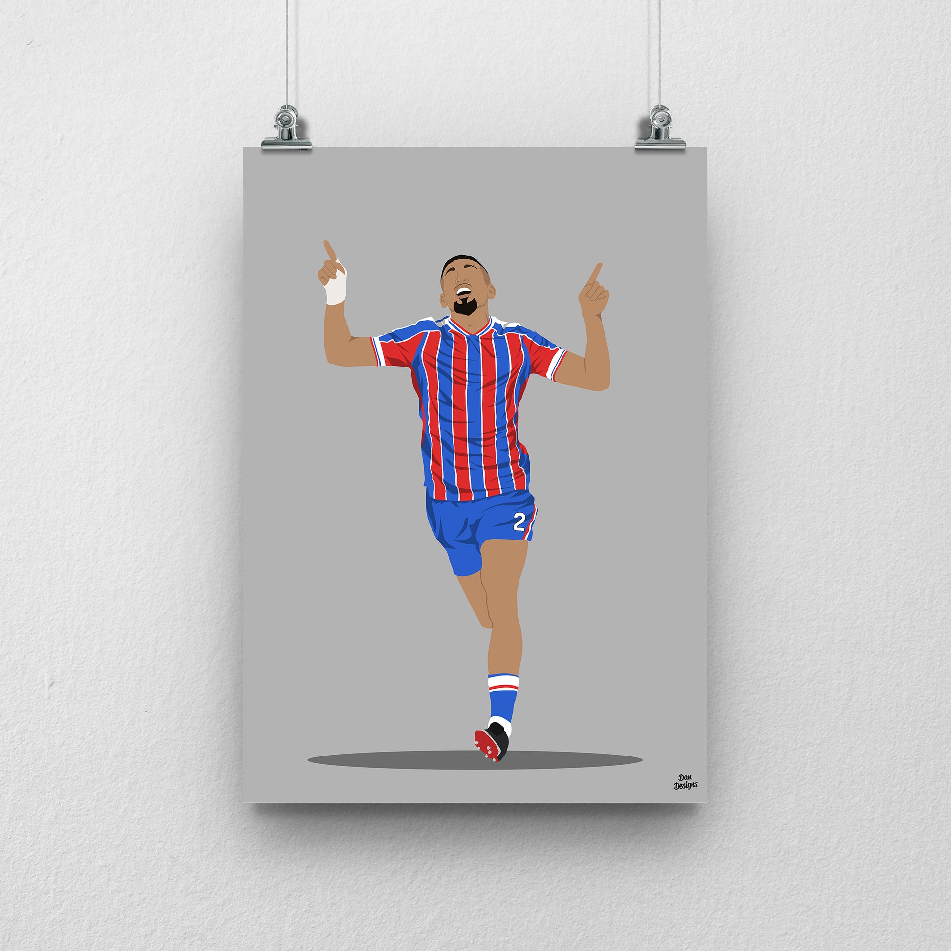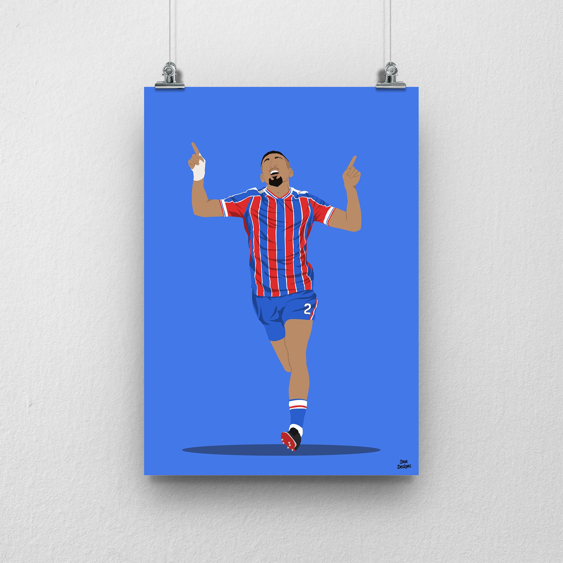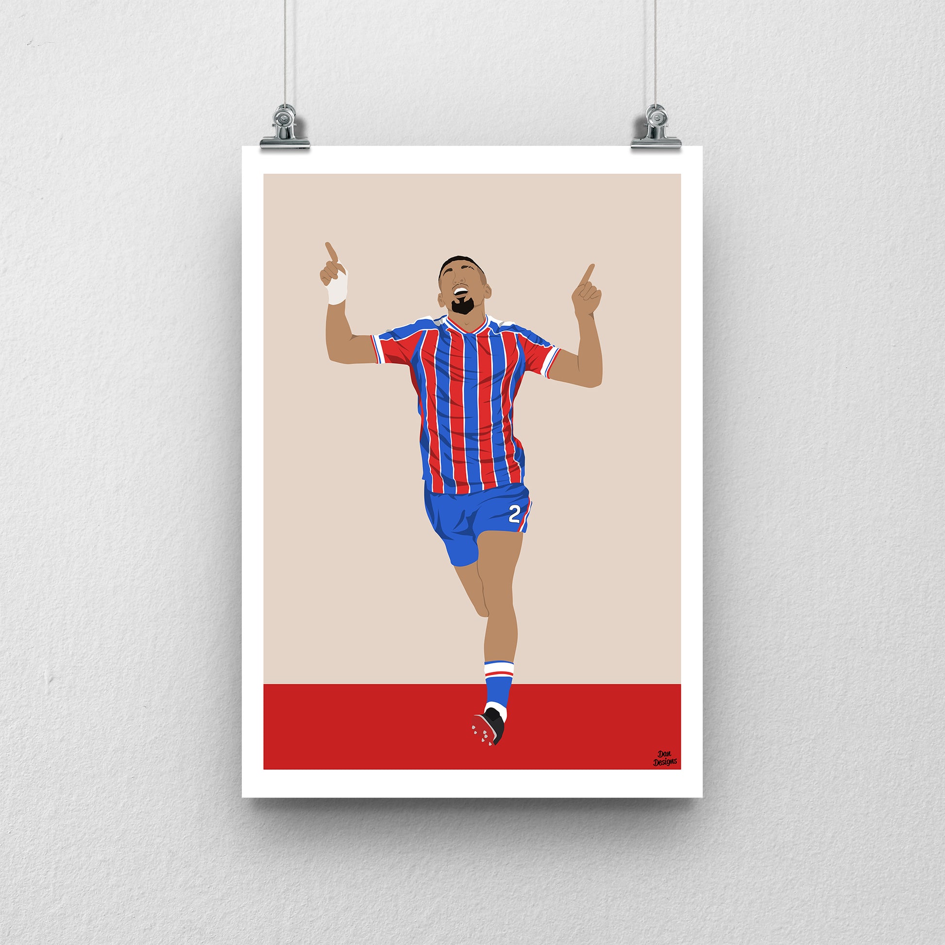 This print features my original illustration of Daniel Munoz in Crystal Palace colours. Operating primarily as a right-back, Muñoz is known for his energy, attacking runs and defensive work on the flank, quickly becoming a regular presence in the Palace side.