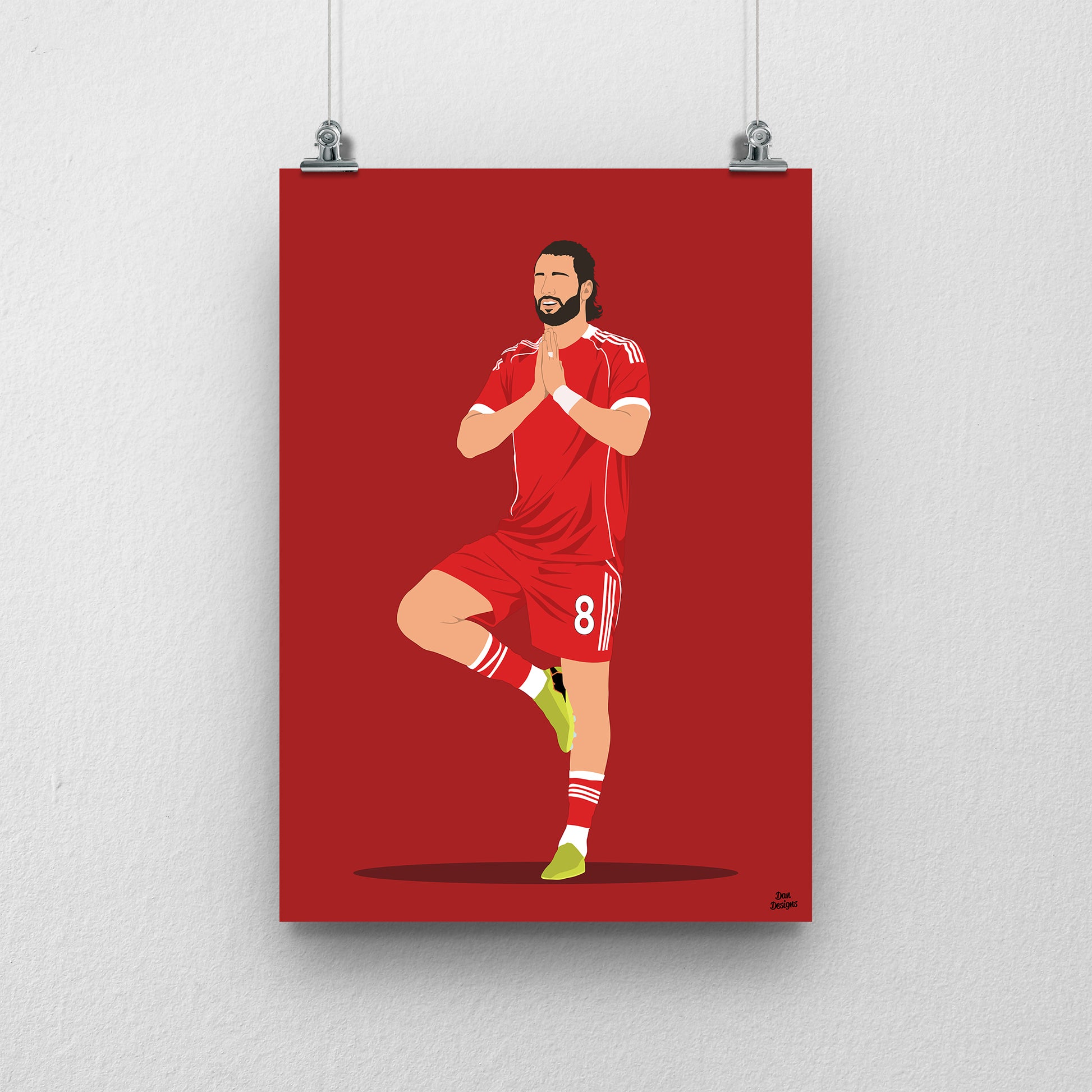 My illustration of Dominik Szoboszlai hitting an iconic celebration at Anfield at Liverpool — technical quality and high work rate reflected in a sharp, modern print design.