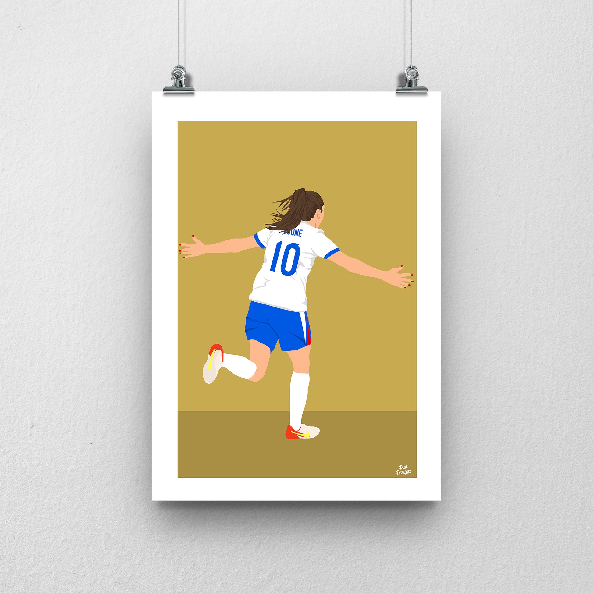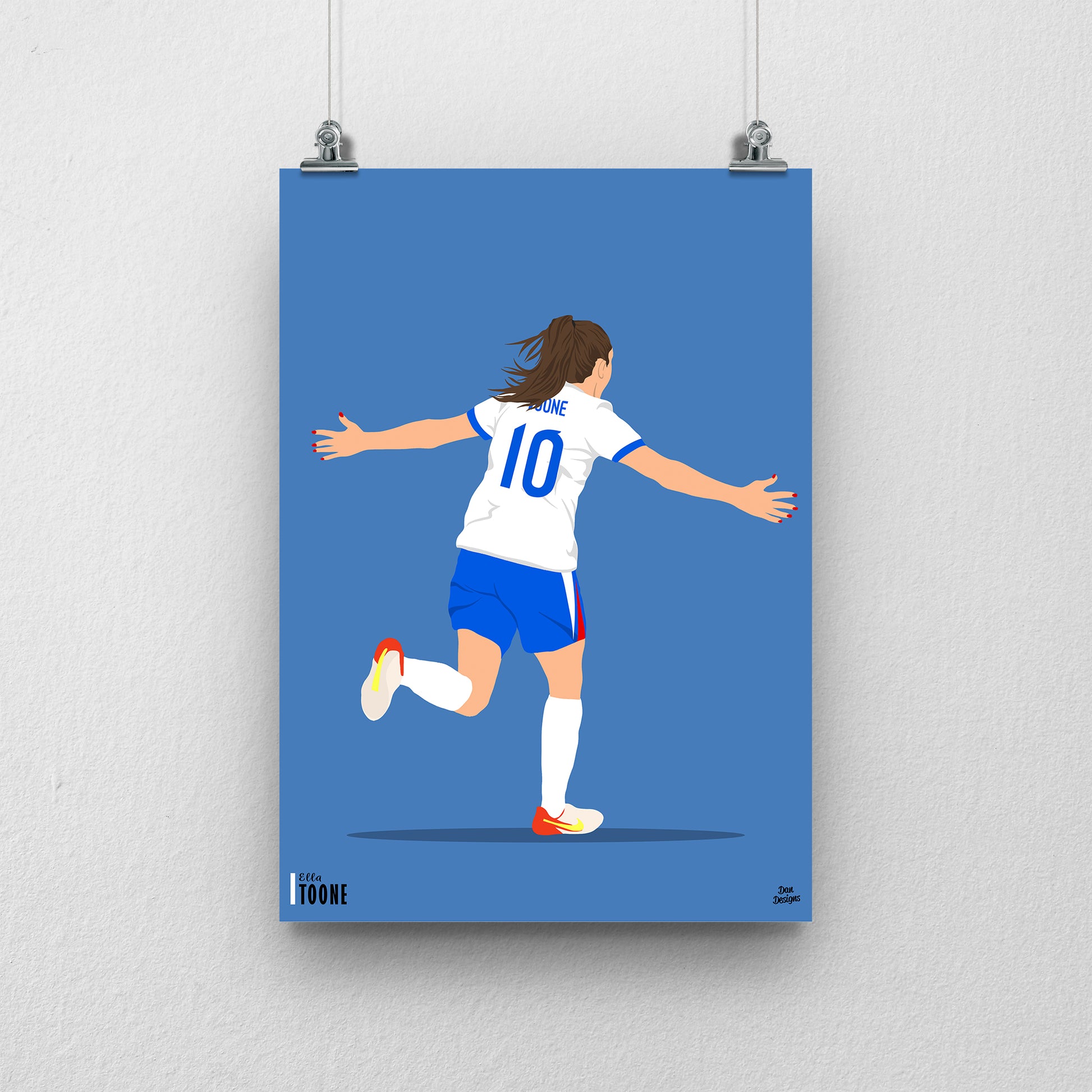 Celebrate Ella Toone’s place in the Lionesses Euro 2025 squad with this clean and minimal football art print. From her breakthrough at Manchester United to scoring in major tournament finals, Toone continues to play a key role for England heading into this summer’s competition.