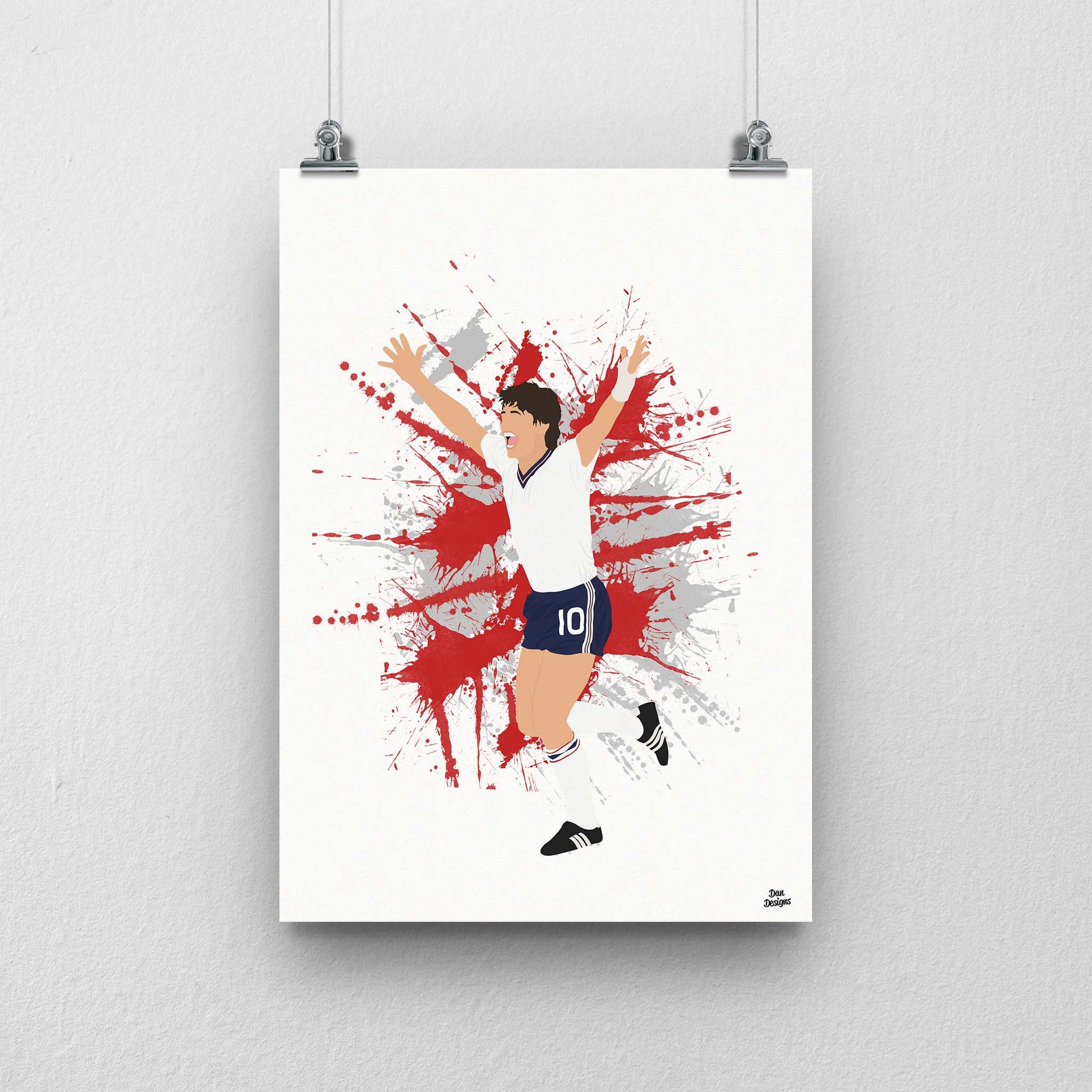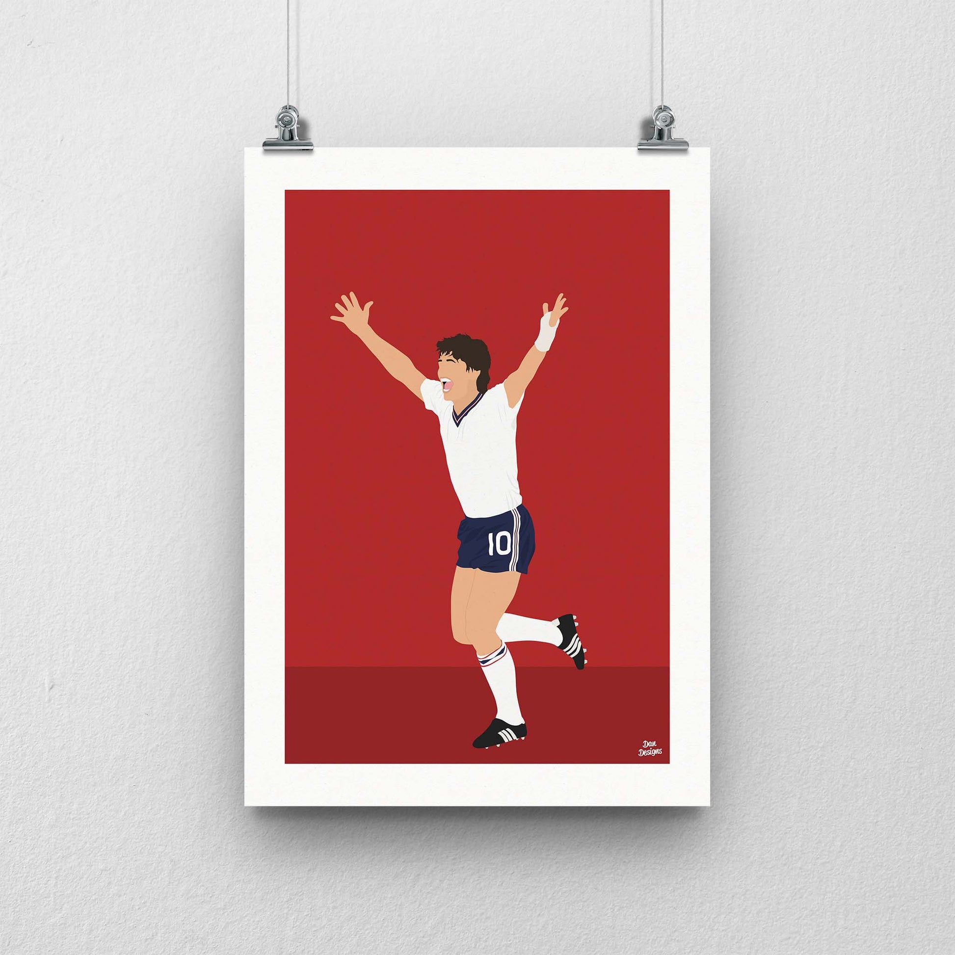 Gary Lineker was England’s main man in front of goal, finishing as the 1986 World Cup Golden Boot winner. This print captures him in my minimalist football artwork style for Three Lions supporters.