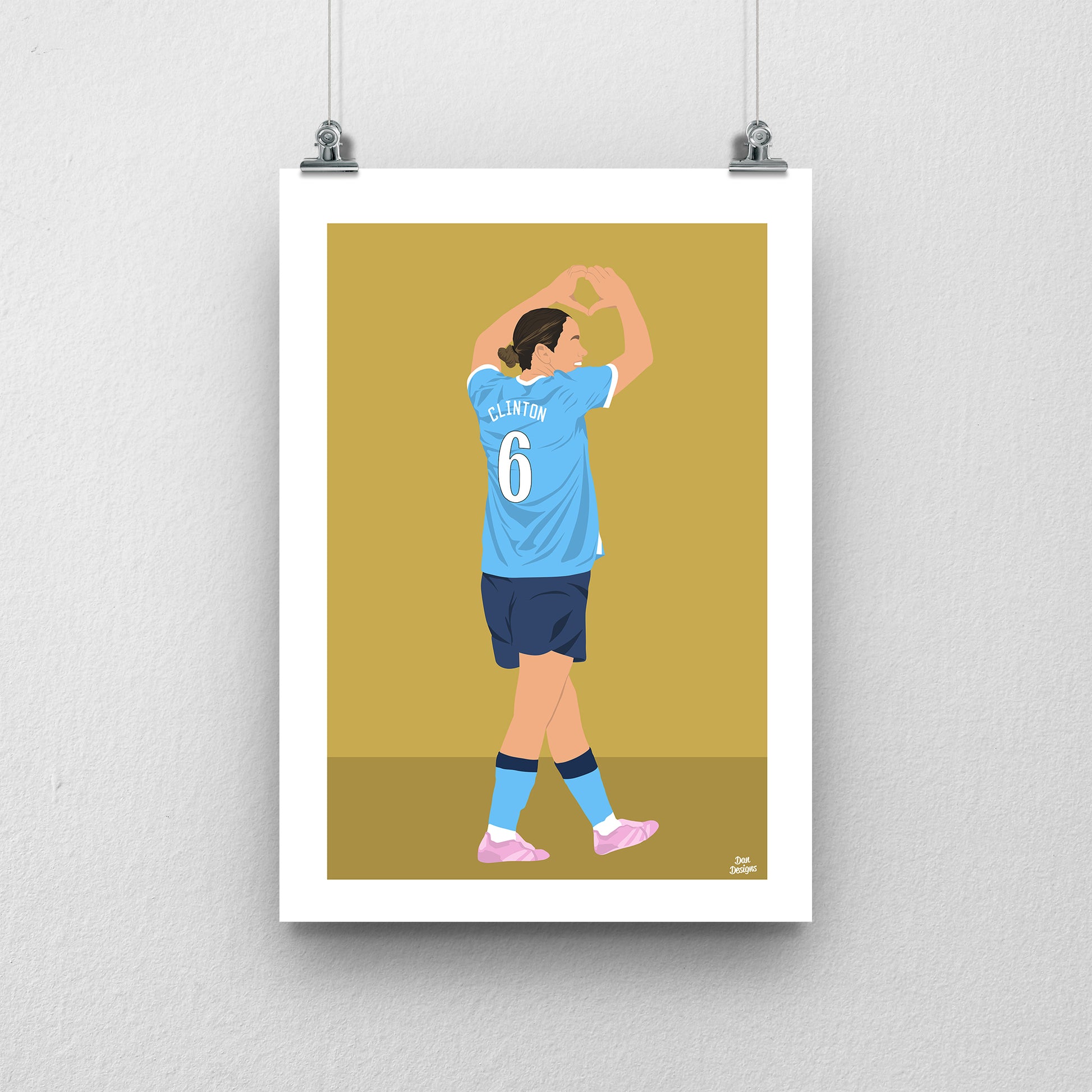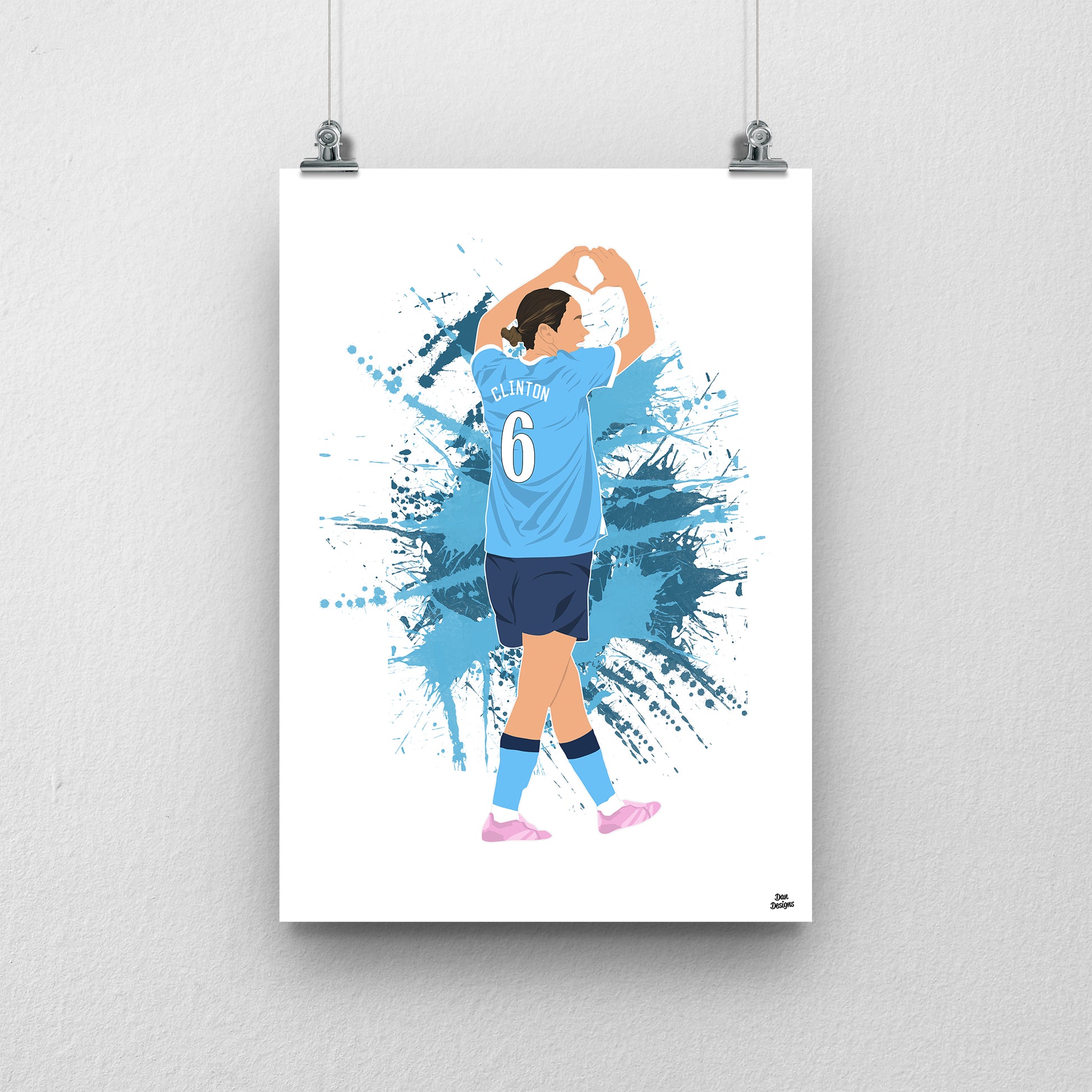 This Grace Clinton print celebrates her rise as one of England’s most exciting young midfielders. A breakthrough into the senior national team, now a Man City player and one of the brightest prospects in the WSL.