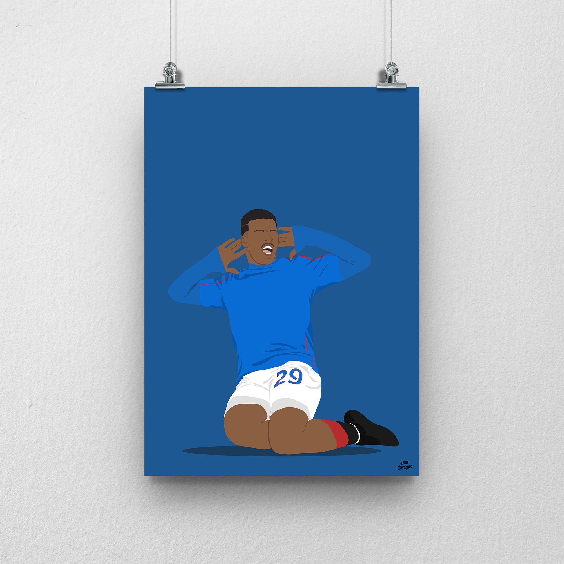Hamza Igamane’s arrival at Rangers adds another exciting talent to Ibrox. This print captures him in my minimalist football artwork style, created for Gers supporters.