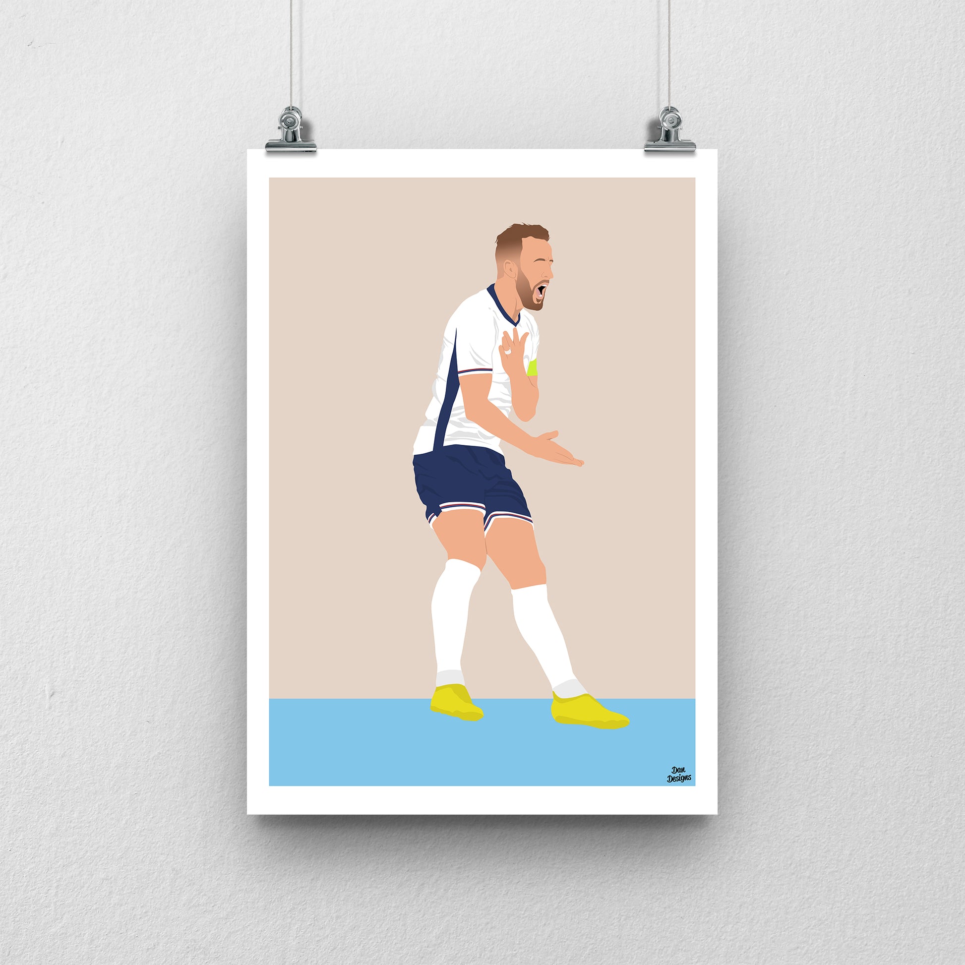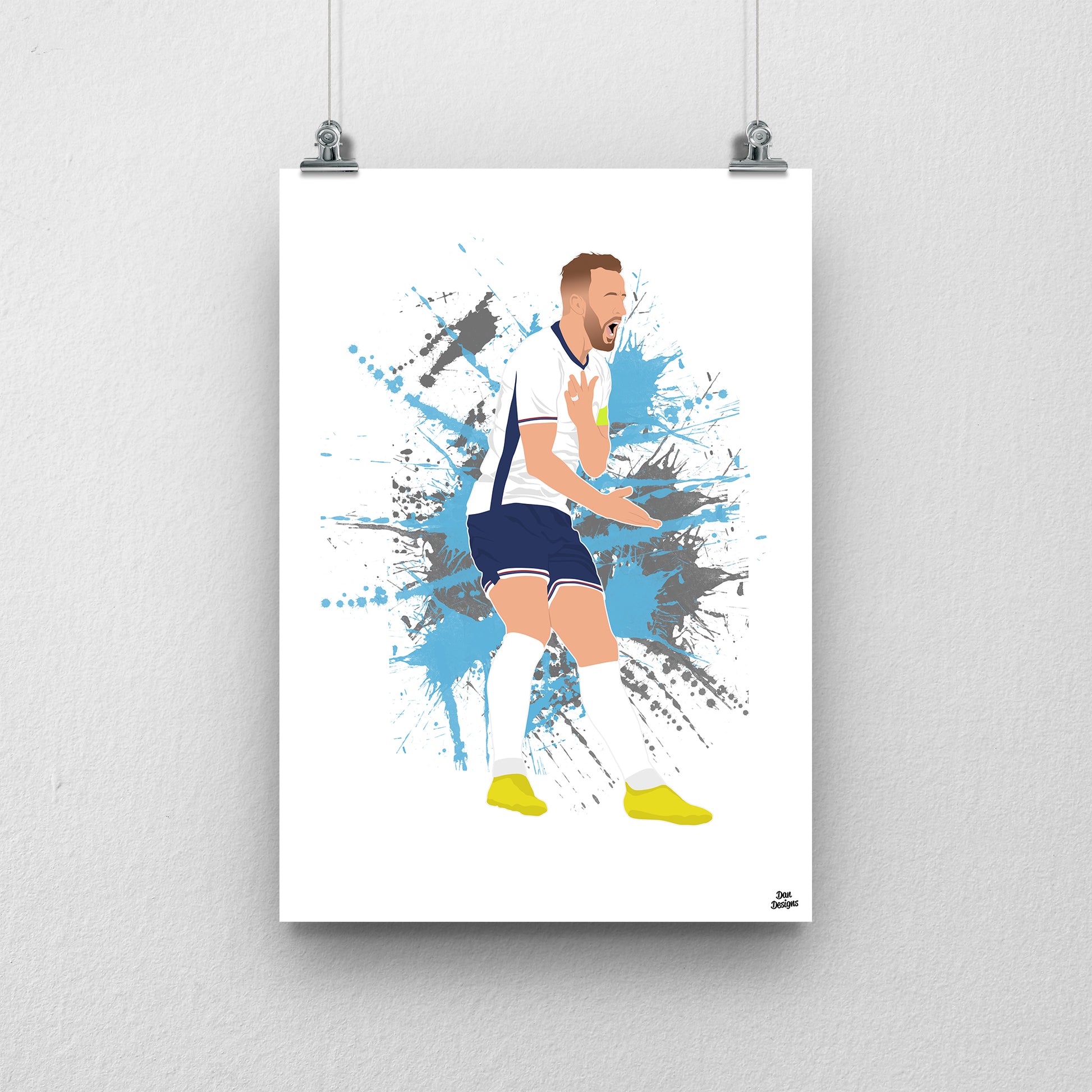 Harry Kane is England’s record goalscorer, admired for his finishing and leadership. This print shows him in my clean football artwork style, perfect for Three Lions fans.