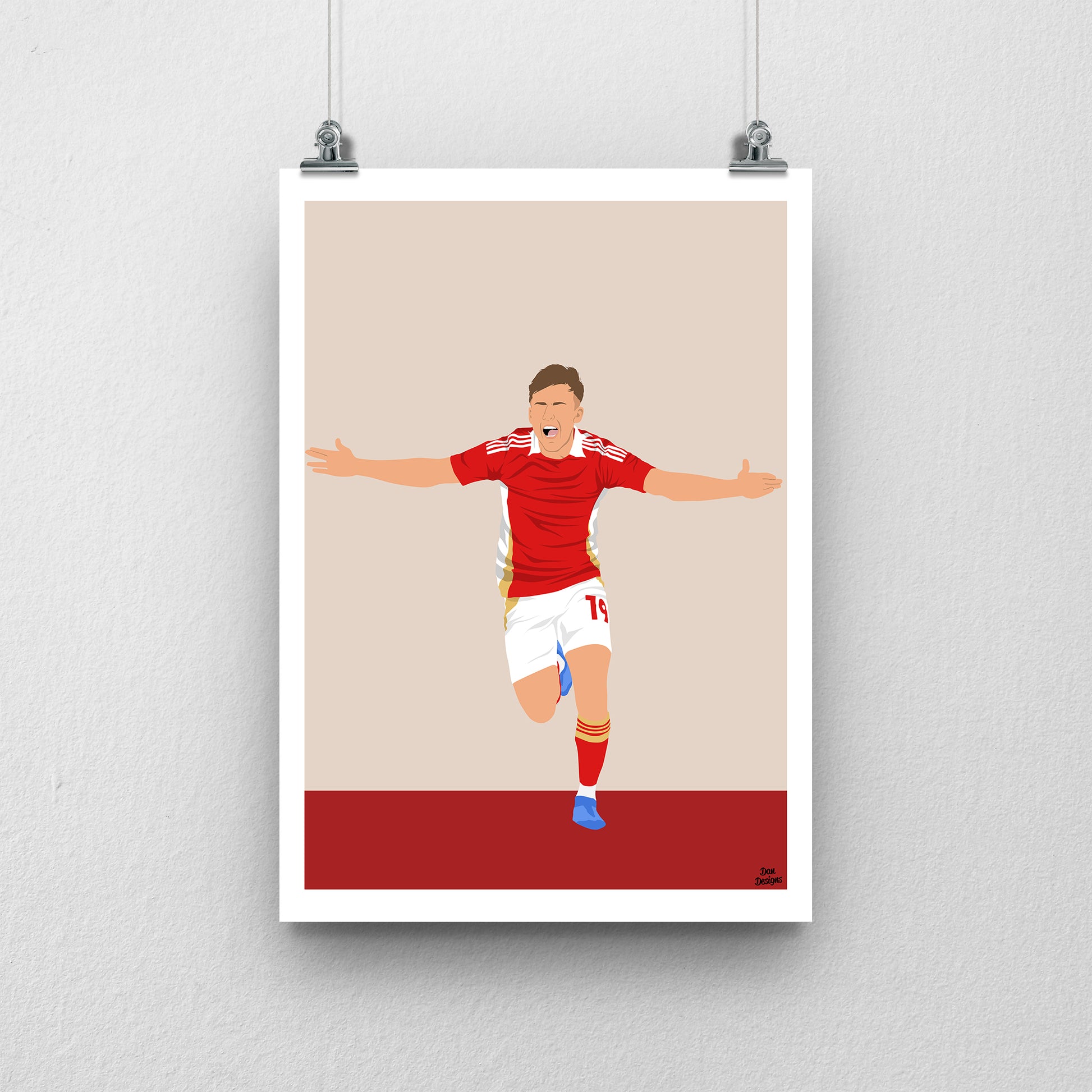 This print features my original illustration of Joe Snowdon in Swindon Town colours. The artwork focuses on the player as part of the current Town squad.