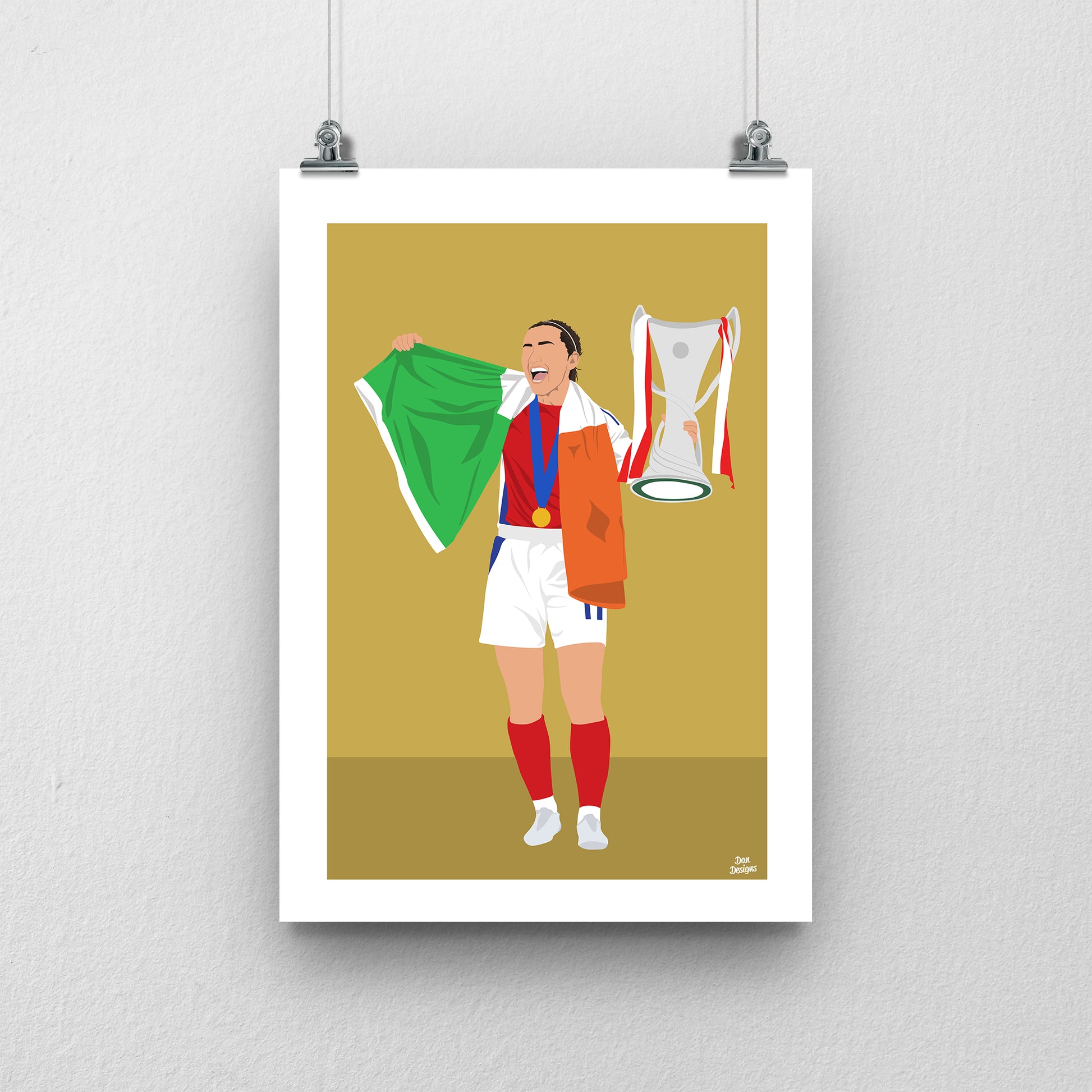 Katie McCabe Arsenal Print, Celebrate Arsenal Women's 2025 UEFA Women's Champions League win with this striking poster featuring Katie McCabe lifting the trophy — a must-have piece of memorabilia for Arsenal fans.