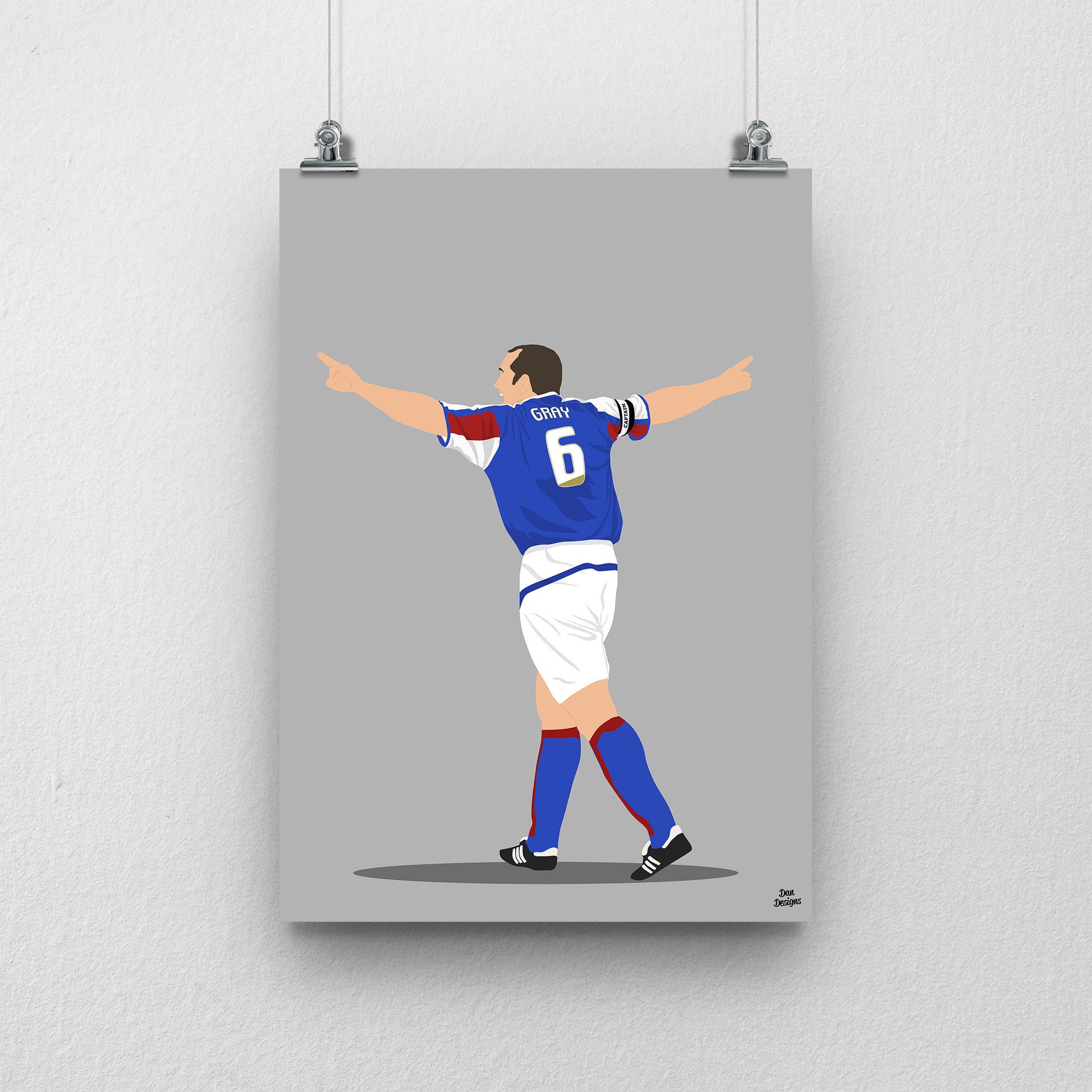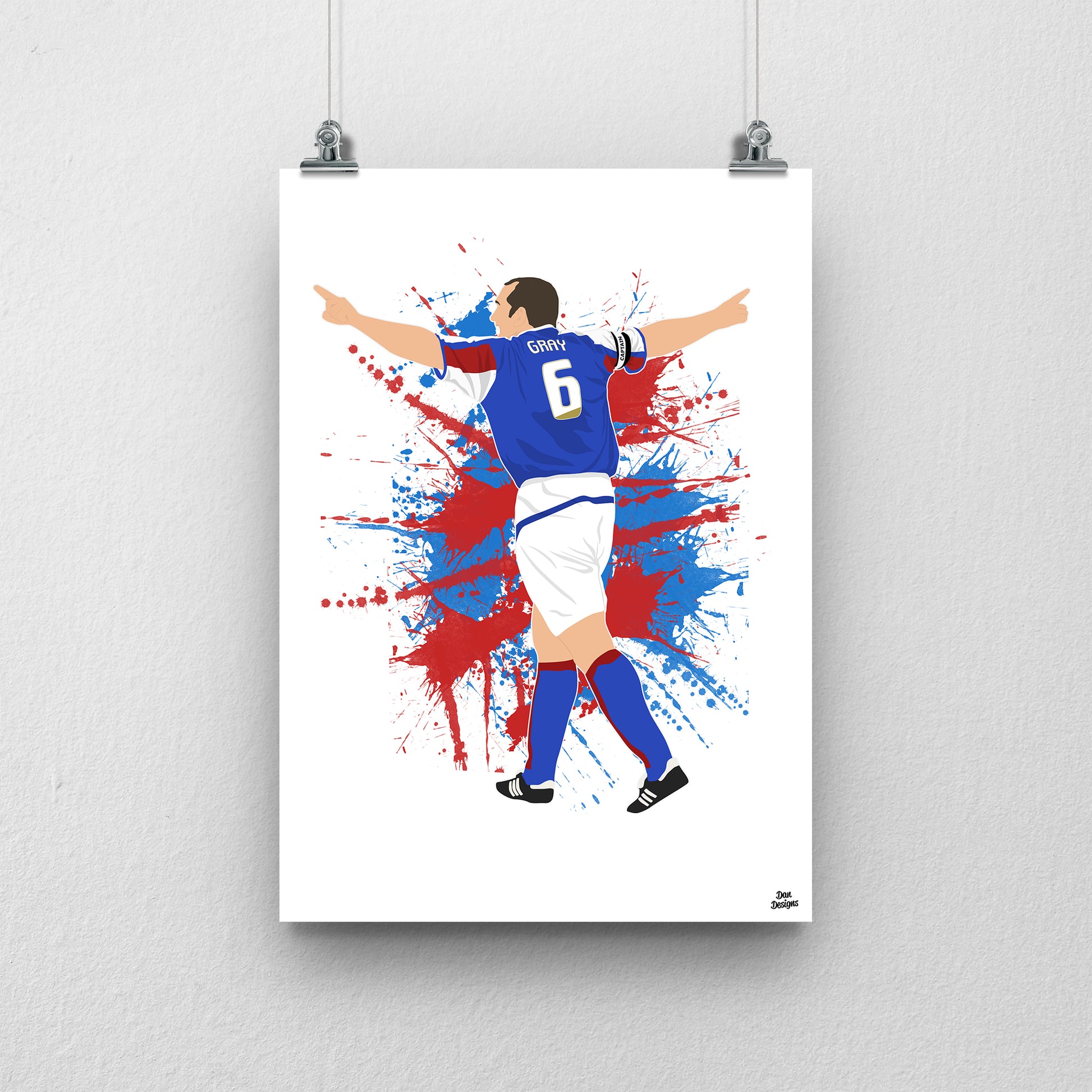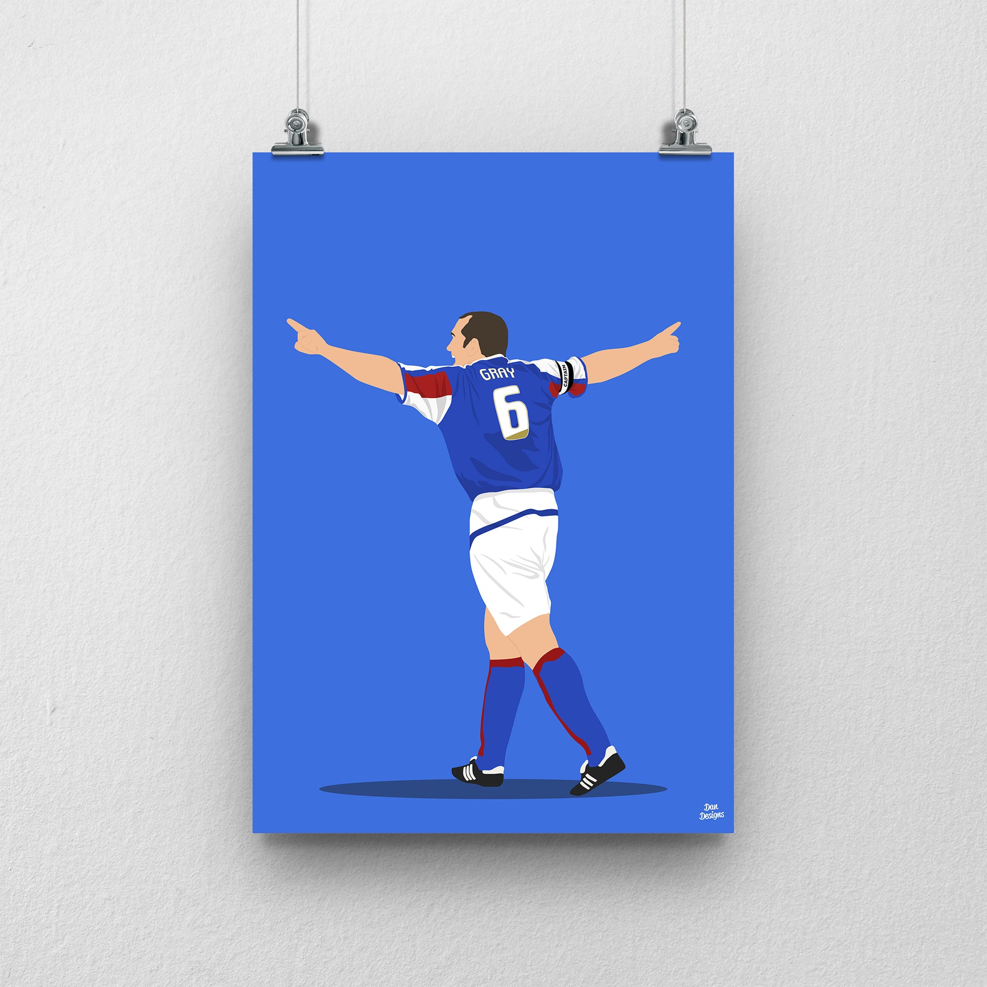 Known for his leadership and strength, Kevin Gray was a defender who set standards high. This official club print celebrates his toughness and reliability — a true fan favourite remembered for his consistency and grit.