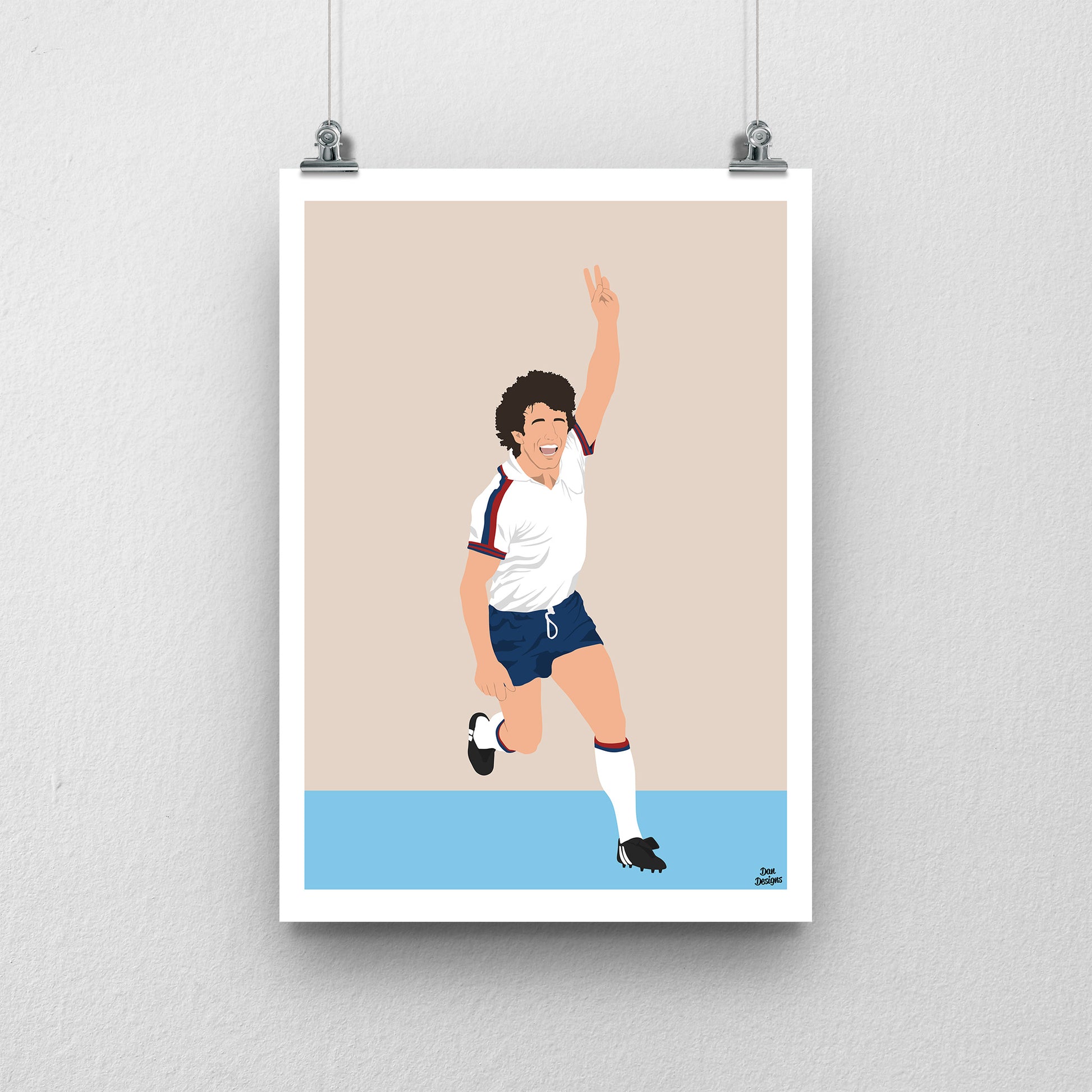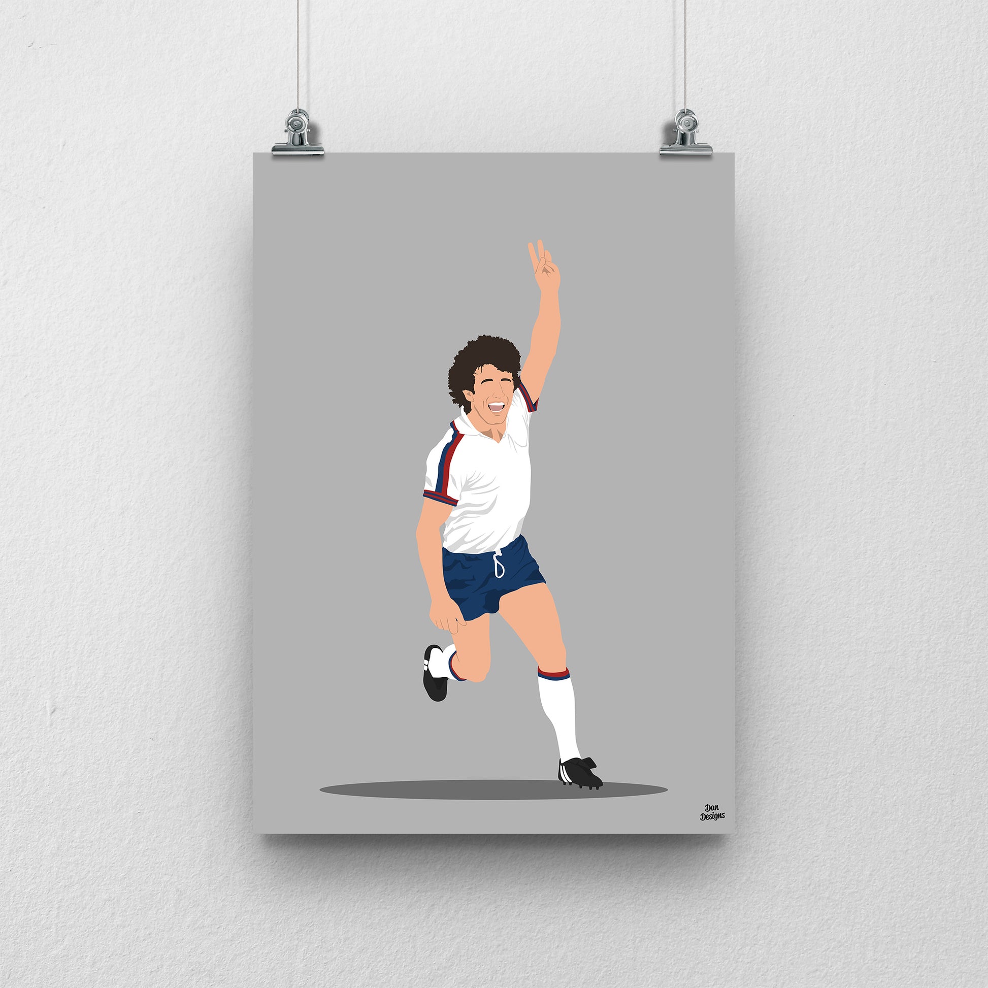 One of English football’s great entertainers, Kevin Keegan brought drive, flair and charisma to every club he played for. My print focuses on his unmistakable presence in the England shirt — a celebration of passion and pure energy.