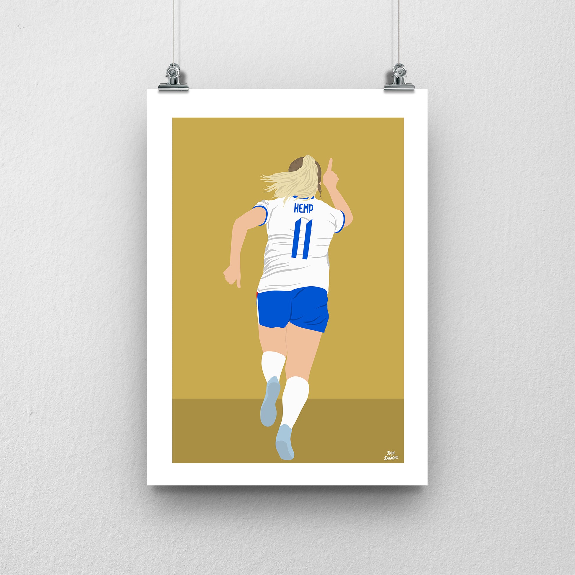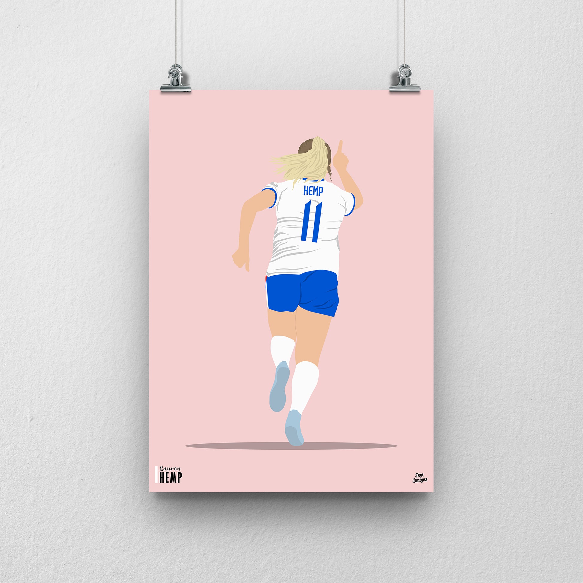 Bring the pace and flair of England’s wing wizard to your wall with this Lauren Hemp Lionesses Euro 2025 print. A dynamic piece of football artwork celebrating one of the tournament’s most dangerous attackers — perfect for fans, gift buyers, and women’s football supporters alike.