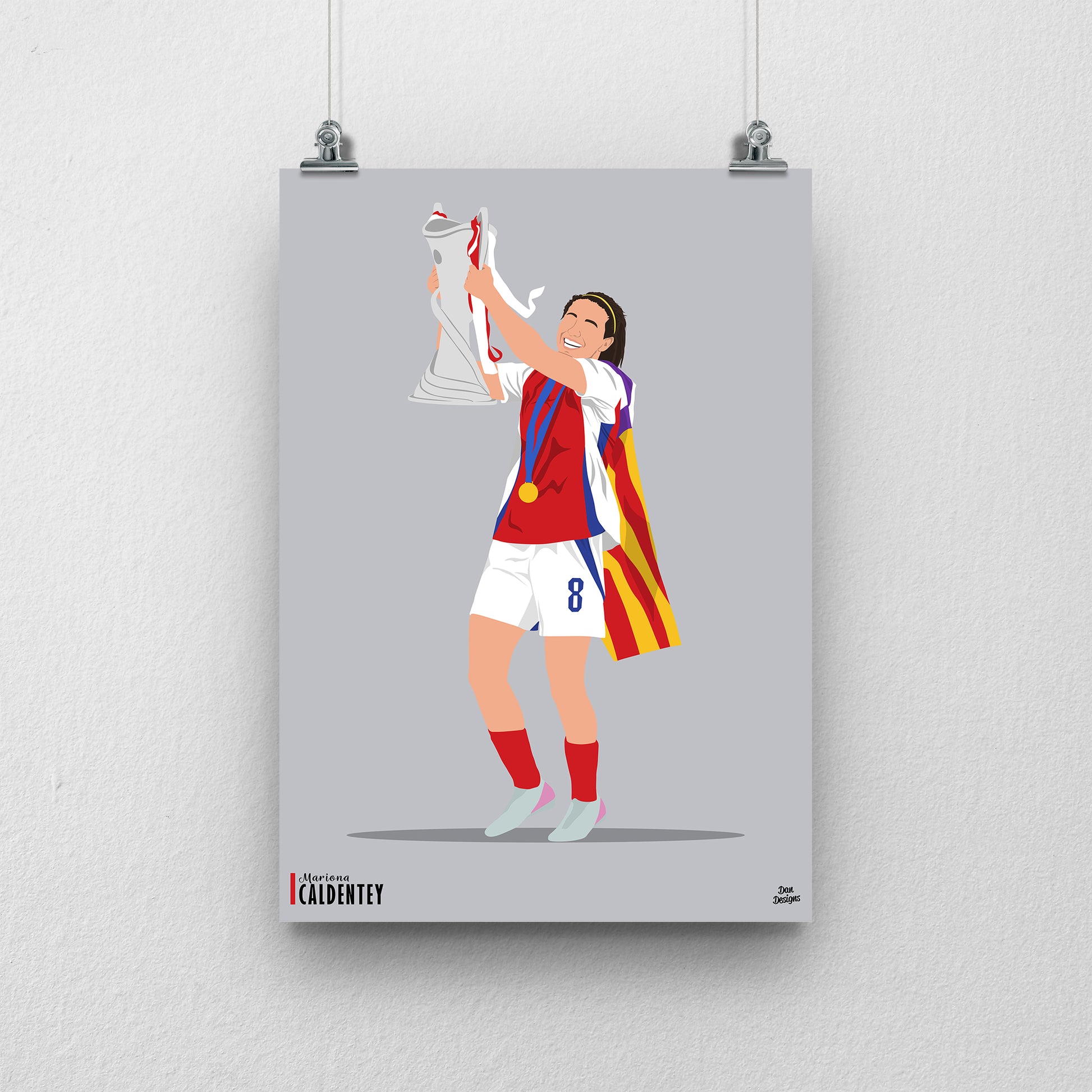 Celebrate Mariona Caldenteys 2025 UEFA Women’s Champions League victory with this bold Arsenal Women’s poster — featuring Mariona Caldentey lifting the trophy in iconic celebration. A must-have for Gunners fans.
