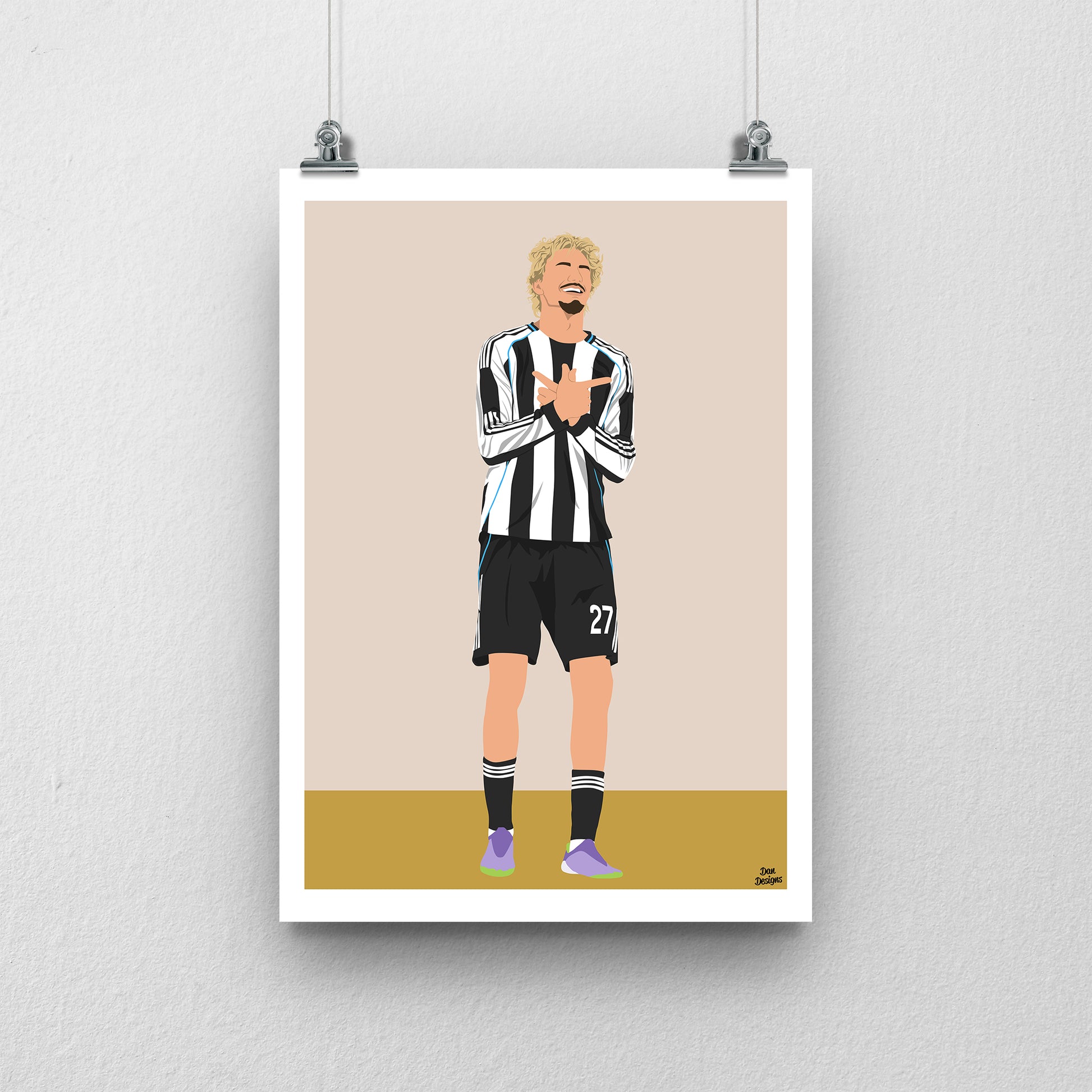 This print features my artwork of Woltemade — a promising talent bringing energy and skill to Newcastle United. His agility and height on the pitch stand out, and I wanted to capture that emerging potential in this piece.