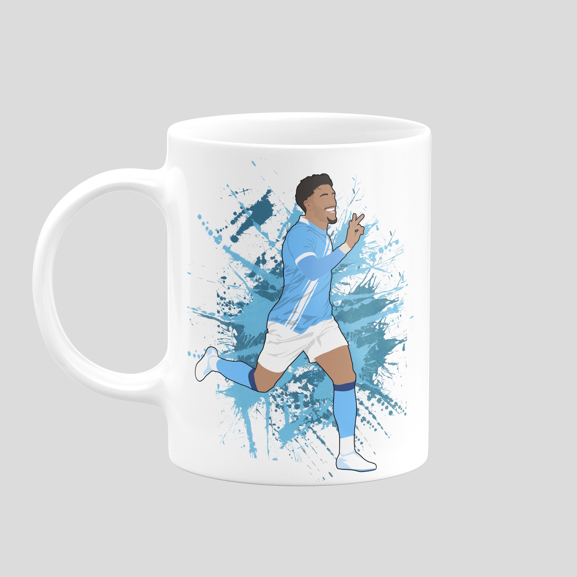 This mug features my design of Omar Marmoush in Manchester City colours — a versatile and technically gifted forward. Whether cutting in from the wing or playing centrally, I illustrated this piece to reflect the speed and flair he brings to the game.