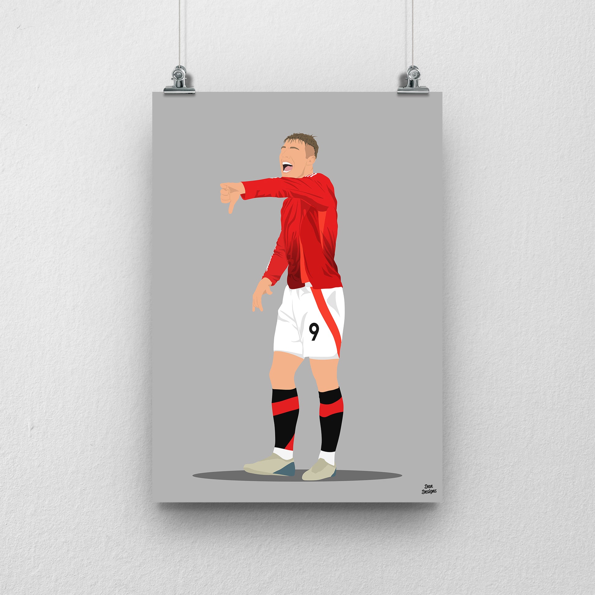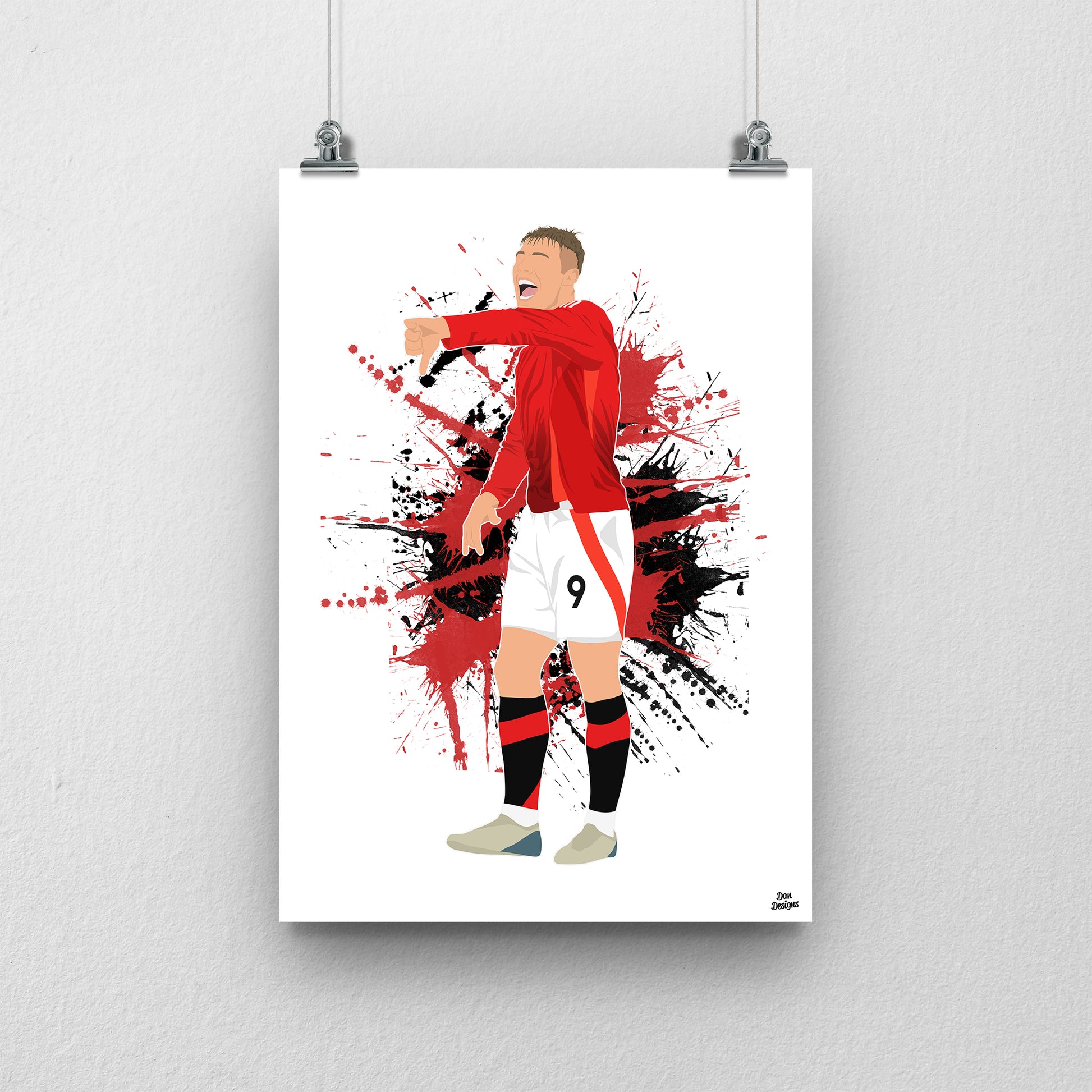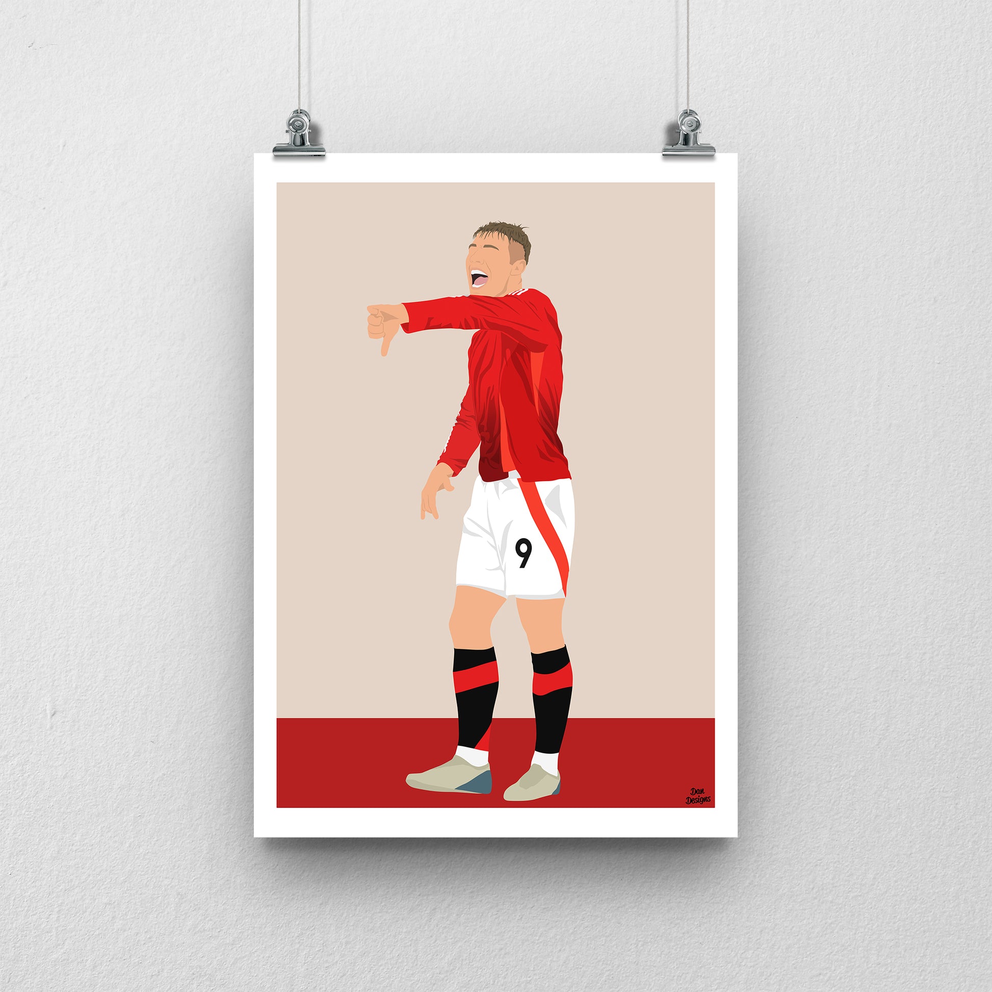 Rasmus Hojlund’s hunger and determination have quickly made him a favourite at Manchester United. This print captures the Danish striker in my minimalist football artwork style, created for Reds fans.