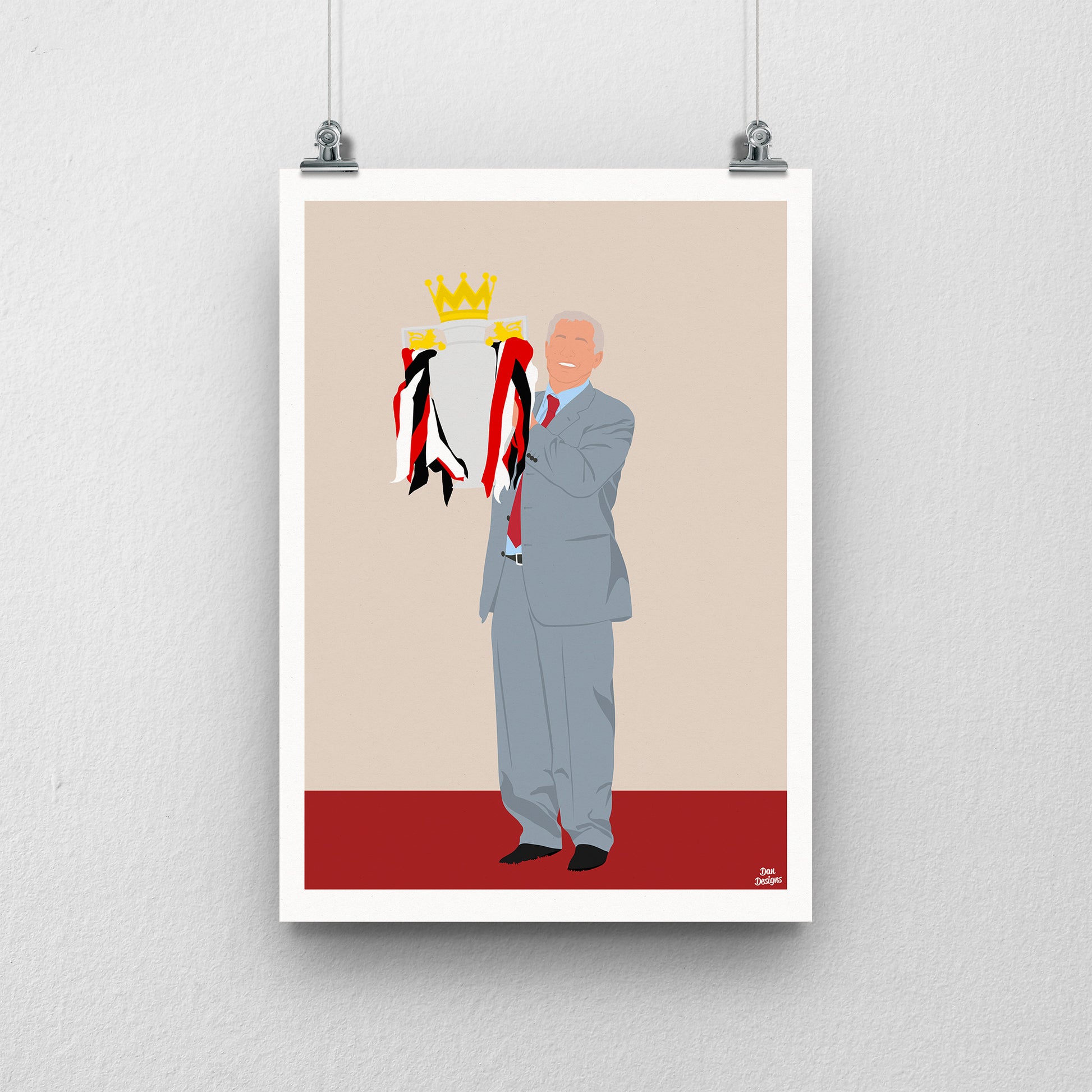This print features my illustration of Sir Alex Ferguson — a design that recognises his unparalleled success at Manchester United, holding one of the many trophies he won with the club. Ideal for collectors of football history and management greats.