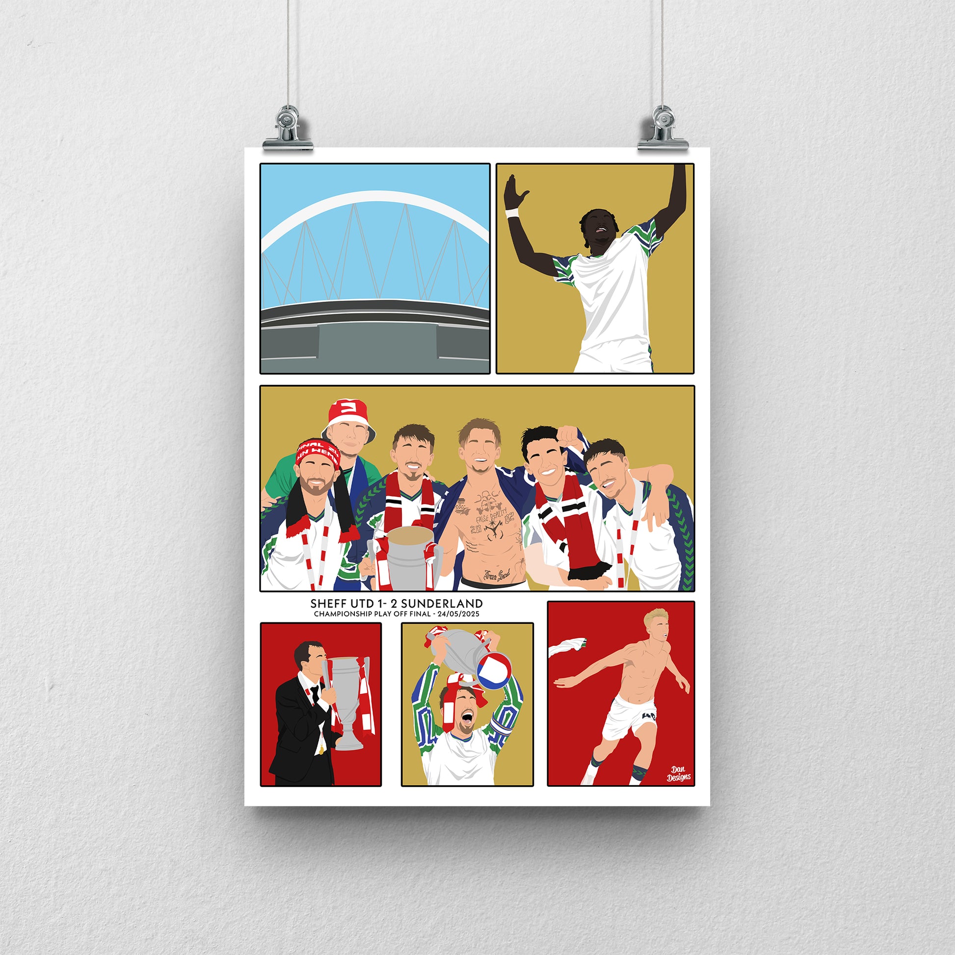 Sunderland AFC, back in the Premier League.. Here's my brand new print — a minimalist design capturing the unforgettable moments of that day at Wembley, both in the game and the celebrations after for the Black Cats.